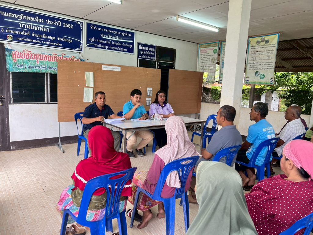 วันที่ 2-3 ตุลาคม 2568 นายเฉลิมพร ศรีสวัสดิ์ เกษตรอำเภอเมืองสตูล มอบหมายให้เจ้าหน้าที่สำนักงานเกษตรอำเภอเมืองสตูล ร่วมกับผู้นำชุมชน ลงพื้นที่จัดเวทีประชาคมและตรวจสอบพื้นที่ปลูกข้าวนาปี 2568/69 ในพื้นที่ตำบลควนโพธิ์ เพื่อตรวจสอบข้อมูลการปลูกข้าว และยืนยันรับรองข้อมูลการขึ้นทะเบียนนาข้าว ปีการผลิต 2568/69 ของตัวเอง และเกษตรกรแปลงข้างเคียงในหมู่บ้าน โดยมีเกษตรกรเข้าร่วม จำนวน 156 ครัวเรือน นอกจากนี้สำนักงานเกษตรอำเภอเมืองสตูลได้ประชาสัมพันธ์การขึ้นและปรับปรุงทะเบียนเกษตรกรผู้ปลูกข้าวที่ยังไม่มาขึ้นทะเบียนในรอบนี้ สามารถแจ้งขึ้นทะเบียนได้ และรอการประชาคมในรอบถัดไป