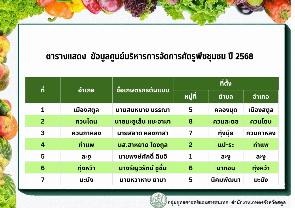 ข้อมูลศูนย์บริหารการจัดการศัตรูพืชชุมชน ปี 2568