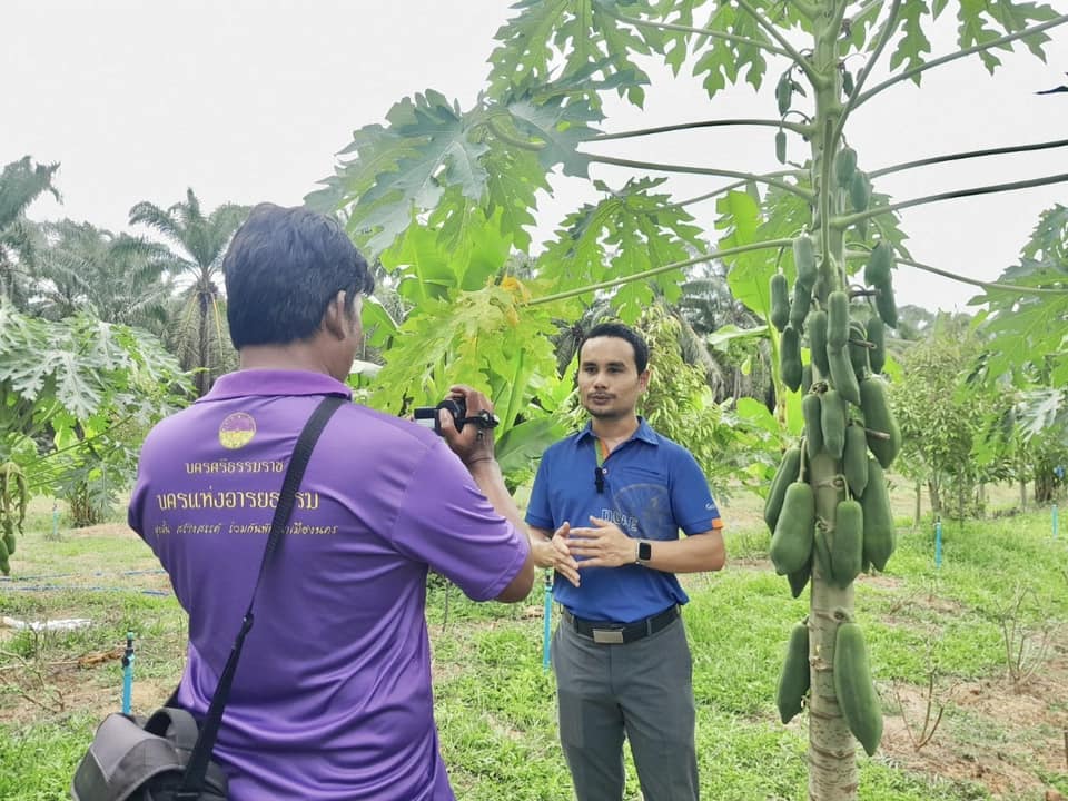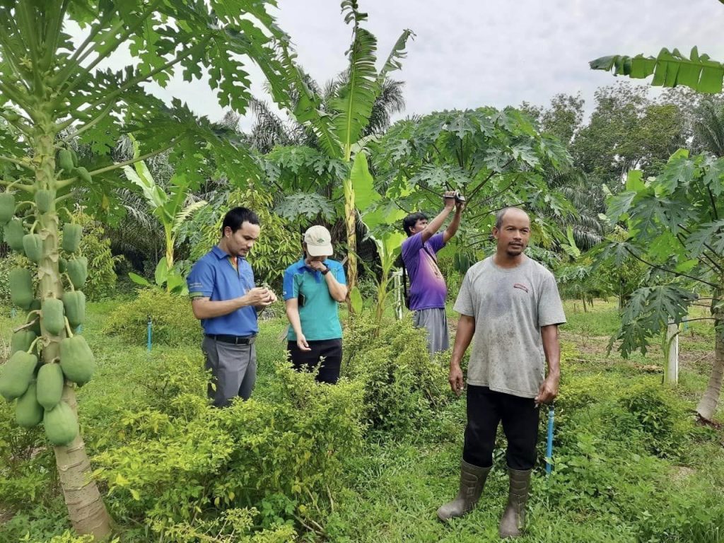 วันที่ 24 พฤษภาคม 2567 นางอภิวันท์ ทองแท่น เกษตรอำเภอควนกาหลง พร้อมด้วยเจ้าหน้าที่ สำนักงานเกษตรอำเภอควนกาหลงลงพื้นที่เยี่ยมเยียนกิจกรรมแปลงเกษตรผสมผสาน ของ นายราเชญ ศรีภักดี เกษตรกรตำบลอุใดเจริญ อำเภอควนกาหลง โดยมีกิจกรรม ปลูก ทุเรียน มะละกอ 3 สายพันธุ์ พริก แก้วมังกร กล้วยหอมทอง กล้วยไข่ บนพื้นที่ 3 ไร่ โดยสามารถสร้างรายได้เสริมแก่เกษตรกรจากอาชีพหลักได้ ทั้งนี้ทางสำนักงานเกษตรอำเภอควนกาหลง ได้แนะนำให้เกษตรกรใช้สารชีวภัณฑ์ ในการจัดการโรคภายในแปลง เพื่อลดใช้สารเคมีภายในแปลงการเกษตร และส่งเสริมให้เกษตรกรขอรับรองมาตรฐาน GAP พืชเพื่อให้พืชมีมาตรฐานรับรอง และใช้ในการประกอบในการจำหน่ายต่อไป ทั้งนี้ได้นำผู้สื่อข่าวร่วมทำข่าวประชาสัมพันธ์กิจกรรมของเกษตรกร อำเภอควนกาหลง เพื่อให้เกษตรกรเข้ามาศึกษาเรียนรู้การปลูกพืชแบผสมผสานเพื่อสร้างรายได้เสริมแก่เกษตรกรต่อไป