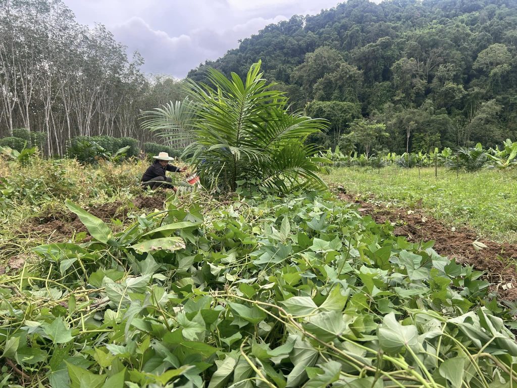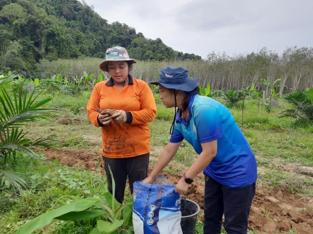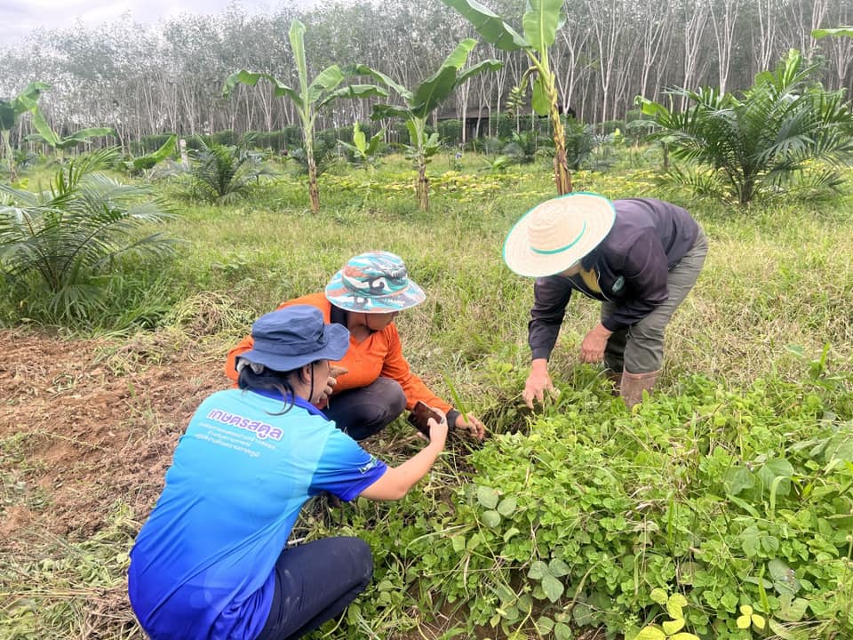 วันที่ 17 พฤศจิกายน 2566 นางอภิวันท์ ทองแท่น เกษตรอำเภอควนกาหลง พร้อมด้วยเจ้าหน้าที่ สำนักงานเกษตรอำเภอควนกาหลง เยี่ยมเยียนกิจกรรมของ Young Smart Farmer นางสาวฐาปณี บุญจันทร์ ซึ่งมีการปลูกพืชแซมปาล์มน้ำมัน ในพื้นที่ 11 ไร่ ได้แก่มันหวาน 5 สายพันธุ์ มันขี้หนู มันสำปะหลัง กล้วยไข่ กล้วยหอม สับปะรด ฟักทอง ฟักเขียว กระเจี๊ยบเขียว มะเขือเปราะ แตงกวา พริก และถั่วลิสง สามารถสร้างรายได้เสริมให้แก่ครอบครัว 12,000 บาทต่อเดือน ทั้งนี้สำนักงานเกษตรอำเภอควนกาหลงได้แนะนำวิธีป้องกันรักษาโรคพืชที่มาในช่วงหน้าฝน และการป้องกันกำจัดแมลงศัตรูพืช ให้แก่ Young Smart Farmer ณ บ้านวังผา ม.9 ตำบลควนกาหลง อำเภอควนกาหลง จังหวัดสตูล
