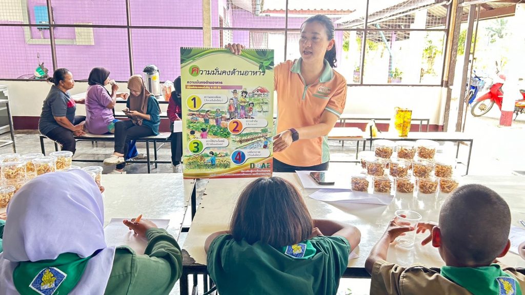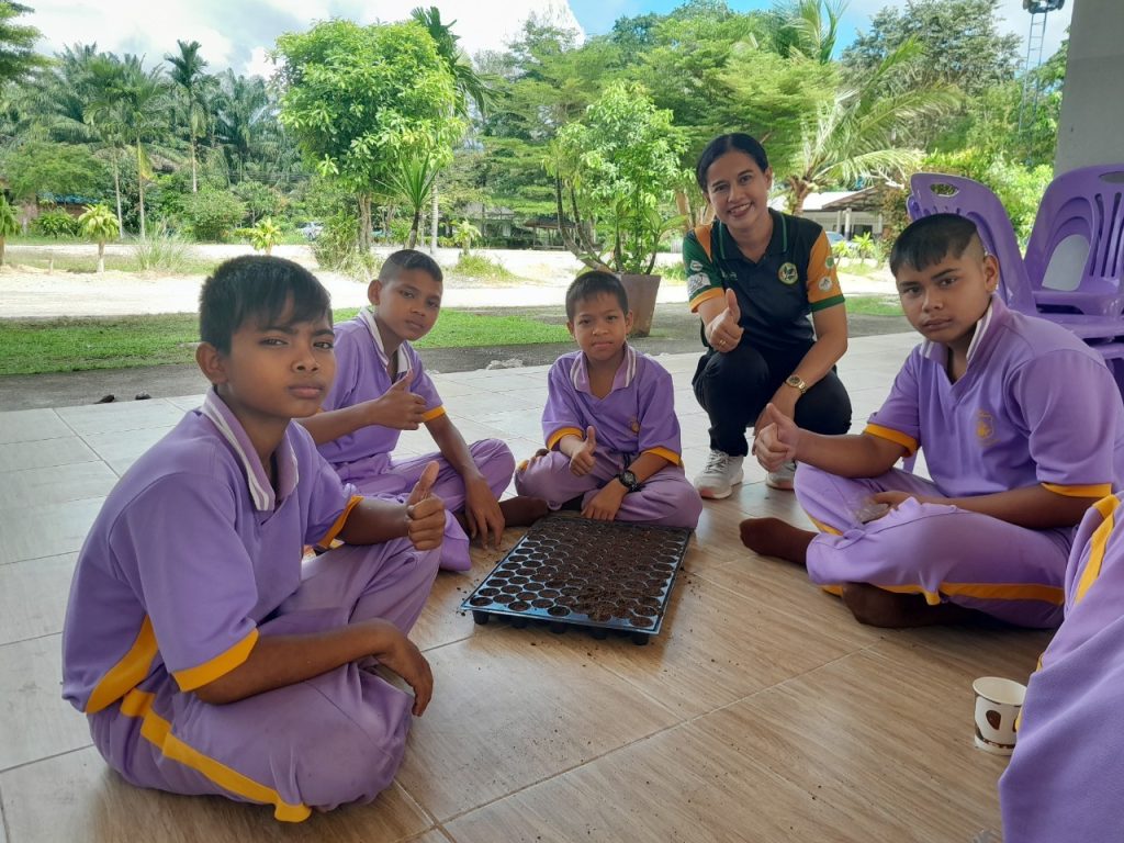 วันที่ 10-11 มกราคม 2567 นางอภิวันท์ ทองแท่น เกษตรอำเภอควนกาหลง มอบหมายนางสาวจุฑามาศ เกียรติอุปถัมภ์ นักวิชาการส่งเสริมการเกษตรชำนาญการ ร่วมกับเจ้าหน้าที่สำนักงานเกษตรจังหวัดสตูล ร่วมจัดอบรมถ่ายทอดความรู้ด้านการเกษตรให้กับ ครู นักเรียน และผู้ปกครอง โครงการเกษตรเพื่ออาหารกลางวัน ณ โรงเรียนตำรวจตระเวนชายแดนบ้านส้านแดง หมู่ที่ 11 ตำบลควนกาหลง อำเภอควนกาหลง จังหวัดสตูล โดยกลุ่มเป้าหมายได้แก่ ครู นักเรียนและผู้ปกครอง ทั้งนี้ได้ให้ความรู้ในเรื่อง การปลูกผักปลอดภัยจากสารพิษ และการปลูกข้าวโพดปลอดสารพิษ การแปรรูปกล้วยเส้น การเรียนรู้เรื่องเศรษฐกิจพอเพียงและความมั่นคงด้านอาหาร เพื่อให้ผู้เข้าอบรมได้นำความรู้ไปปฎิบัติใช้ในแปลงเกษตรที่โรงเรียน ที่บ้าน และมีขยายผลต่อชุมชนต่อไป