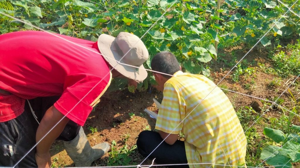 เกษตรกรปลูกพืชใช้น้ำน้อย พื้นที่ปลูก จำนวน 4 ไร่ ได้แก่ แตงกวา จำนวน 2-2-0 ไร่ และพริก จำนวน 1-2-0 ไร่ ซึ่งอยู่ในระหว่างการให้ผลผลิต และเก็บเกี่ยวเพื่อจำหน่ายให้แก่แม่ค้าคนกลางในพื้นที่อำเภอควนกาหลง โดยจำหน่ายพริก ราคากิโลกรัมละ 150 บาท และแตงกวา ราคากิโลกรัมละ 10 บาท และเป็นการปลูกแซมในสวนยางพาราเล็ก สามารถสร้างรายได้ให้แก่ครัวเรือนก่อนที่พืชเศรษฐกิจหลักจะสร้างรายได้ ทั้งนี้เกษตรกรมีการจัดการน้ำ โดยใช้น้ำจากคลองละงู โดยระบบน้ำพุ่ง ซึ่งน้ำจากคลองละงูมีปริมาณที่เพียงพอต่อการผลิตพืช