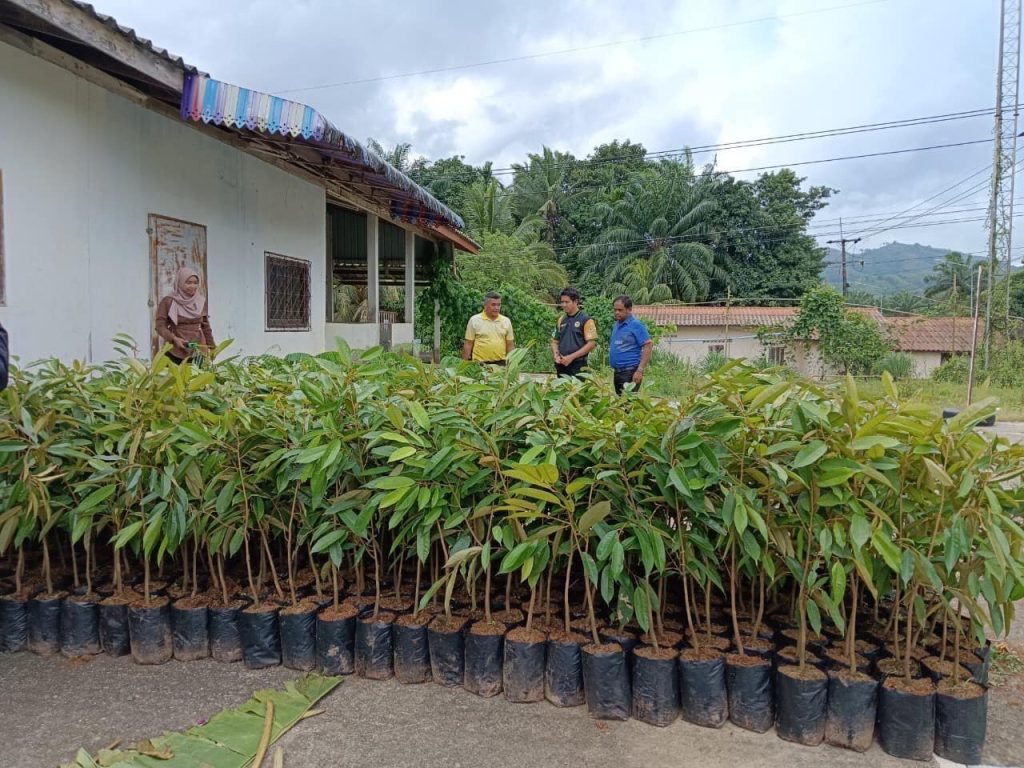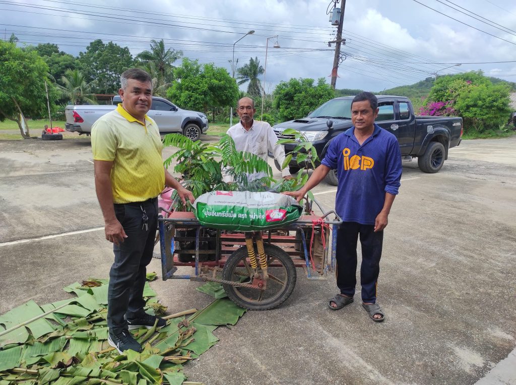 นายภิภพ สิทธิยาสกุล เกษตรอำเภอมะนัง พร้อมด้วย นายสุรินทร์ ยี่สุ่นทรง หัวหน้ากลุ่มส่งเสริมและพัฒนาการผลิต เจ้าหน้าที่กลุ่มส่งเสริมและพัฒนาการผลิต สำนักงานเกษตรจังหวัดสตูลและเจ้าหน้าที่สำนักงานเกษตรอำเภอมะนัง มอบปัจจัยการผลิตแก่เกษตรกรผู้เข้าร่วมโครงการส่งเสริมและพัฒนาอาชีพเพื่อแก้ไขปัญหาที่ดินทำกินของเกษตรกร ได้แก่ปุ๋ยอินทรีย์ ต้นพันธุ์ทุเรียนหมอนทองและต้นพันธุ์สะตอ ซึ่งปัจจัยดังกล่าวมาจากการวิเคราะห์ศักยภาพพื้นที่