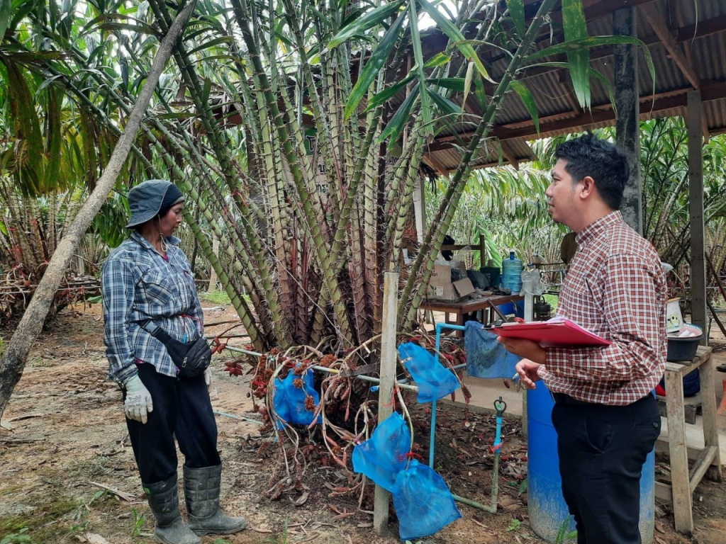 นายภิภพ สิทธิยาสกุล เกษตรอำเภอมะนัง มอบหมายให้เจ้าหน้าที่สำนักงานเกษตรอำเภอมะนัง ร่วมด้วยเจ้าหน้าที่กลุ่มส่งเสริมพัฒนาการผลิต สำนักงานเกษตรจังหวัดสตูล ลงพื้นที่ติดตามเกษตรกรผู้ปลูกสละ พร้อมทั้งให้คำแนะนำ ปรึกษา และสอบถามปัญหาอุปสรรคต่างๆ เกี่ยวกับสละ ภายใต้โครงการส่งเสริมการผลิตสินค้าเกษตรตามศักยภาพของพืันที่ กิจกรรม พัฒนาศักยภาพการผลิตสละ เป้าหมายเกษตรกร 5 ราย ณ ม.2 (ปาล์ม3) ต.ปาล์มพัฒนา อ.มะนัง จ.สตูล