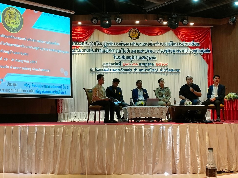 วันที่ 29-31 กรกฎาคม 2567 นายเฉลิมพร ศรีสวัสดิ์ เกษตรอำเภอเมืองสตูลมอบหมายให้เจ้าหน้าที่สำนักงานเกษตรอำเภอเมืองสตูล เข้าร่วมประชุมเชิงปฏิบัติการพัฒนาทักษะและเพิ่มศักยภาพในการขับเคลื่อนการมีส่วนร่วมของประชาชนเพื่อการแก้ไขปัญหาและพัฒนาเศรษฐกิจฐานรากเศรษฐกิจชุมชนในระดับหมู่บ้านและชุมชน ระหว่างวันที่ 29-31 กรกฎาคม 2567 ณ โรงแรมสยามออเรียนทัล อำเภอหาดใหญ่ จังหวัดสงขลา โดย น.อ.จักรพงษ์ อภิมหาธรรม ผู้อำนวยการกองส่งเสริมและสนับสนุนงานพัฒนาฝ่ายพลเรือน ศูนย์อำนวยการบริหารจังหวัดชายแดนภาคใต้ เป็นประธานเปิดการประชุมดังกล่าว