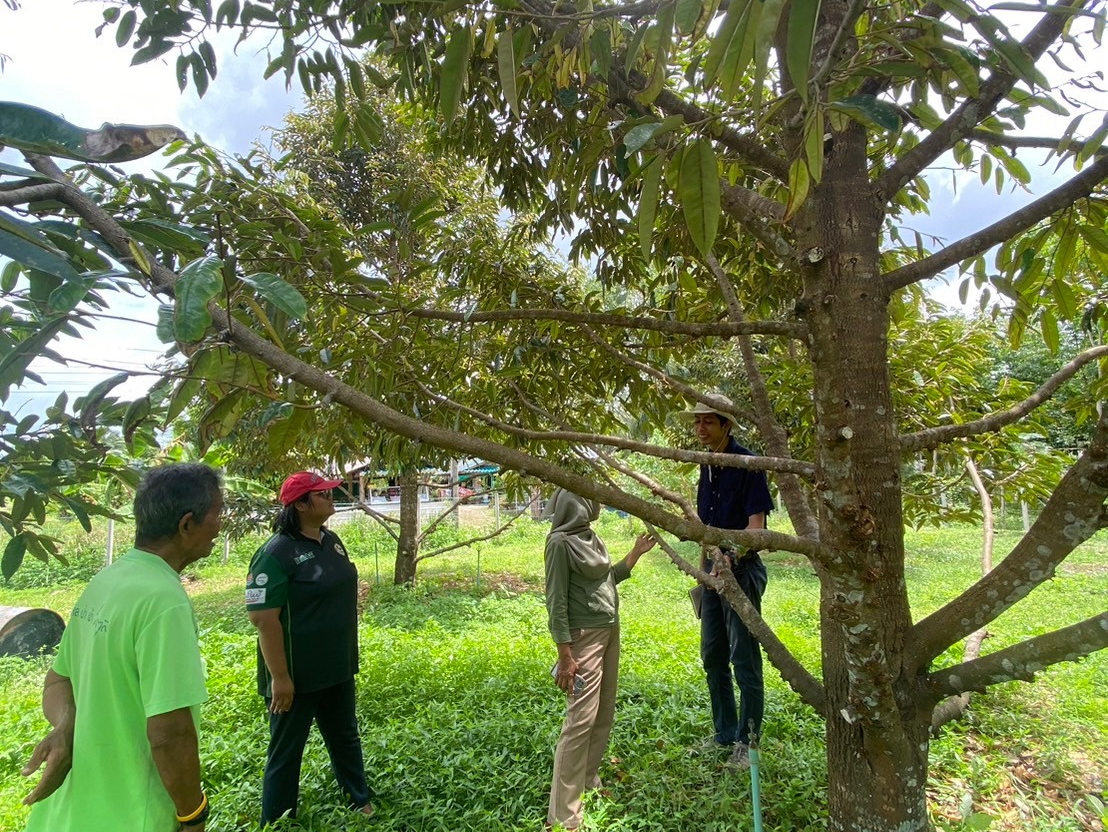วันที่ 4 กันยายน 2567 นายเฉลิมพร ศรีสวัสดิ์ เกษตรอำเภอเมืองสตูล มอบหมายให้เจ้าหน้าที่สำนักงานเกษตรอำเภอเมืองสตูล เยี่ยมเยียนและติดตามเกษตรกรผู้ปลูกไม้ผล หมู่ที่ 2 ตำบลคลองขุด อำเภอเมืองสตูล จังหวัดสตูล ซึ่งแปลงของนายปิยะพงค์ ชัยยะวิริยะ ดำเนินกิจกรรมการปลูกจำปาดะ และทุเรียน ซึ่งมีการวางระบบน้ำอัตโนมัติพร้อมการให้ปุ๋ยกับไม้ผลโดยใช้พลังงานแสงอาทิตย์จากแผงโซลาร์เซลล์ ในพื้นที่ 2 ไร่ และแปลงของนายสิทธิศักดิ์ ดวงดี ดำเนินกิจกรรมการปลูกทุเรียนในพื้นที่ 3 ไร่ โดยแปลงดังกล่าวประสบปัญหาผลผลิตลดลงในช่วงปีที่ผ่านมาเนื่องจากสภาพอากาศร้อน และยังมีปัญหาหนอนเจาะต้นทุเรียนเข้ารบกวน ทั้งนี้ได้แนะนำให้เกษตรกรหมั่นสำรวจสวนทุเรียนเป็นประจำ โดยสังเกตรอยแผลจากการวางไข่หรือขุยไม้ละเอียดจากการทำลายของหนอน ถ้าพบร่องรอยการทำลายให้ใช้มีดคมถากเปลือกต้นทุเรียนออกแล้วจับตัวหนอนและไข่มาทำลาย