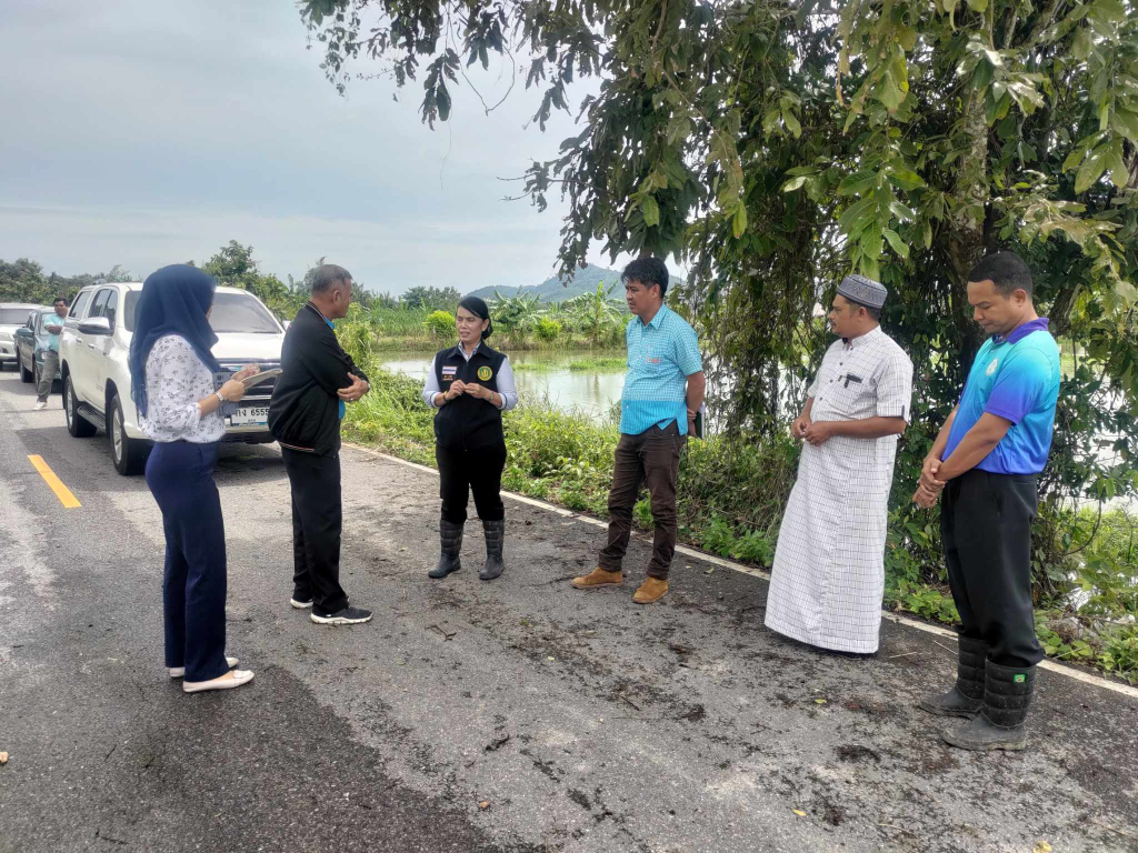 วันที่ 20 กันยายน 2567 นายเฉลิมพร ศรีสวัสดิ์ เกษตรอำเภอเมืองสตูล พร้อมด้วยเจ้าหน้าที่สำนักงานเกษตรอำเภอเมืองสตูล ร่วมกับ นายวุฒิศักดิ์ เพชรมีศรี ผู้อำนวยการสำนักงานส่งเสริมและพัฒนาการเกษตรที่ 5 จังหวัดสงขลา และนางสุดา ยาอีด เกษตรจังหวัดสตูล ลงพื้นที่ติดตามสถานการณ์อุทกภัยในพื้นที่อำเภอเมืองสตูล ซึ่งได้เกิดสถานการณ์อุทกภัยเมื่อวันที่ 13-17 กันยายน 2567 ที่ผ่านมา ในการลงพื้นที่ครั้งนี้ได้มีการติดตามสถานการณ์ รวมทั้งแลกเปลี่ยนข้อมูลปัญหาในพื้นที่ ร่วมกับผู้ใหญ่บ้าน และองค์การบริหารส่วนตำบลบ้านควน ซึ่งเกษตรกรที่ได้รับผลกระทบส่วนใหญ่เป็นเกษตรกรที่ประกอบอาชีพทำนา ณ หมู่ที่ 7 ตำบลบ้านควน อำเภอเมืองสตูล จังหวัดสตูล