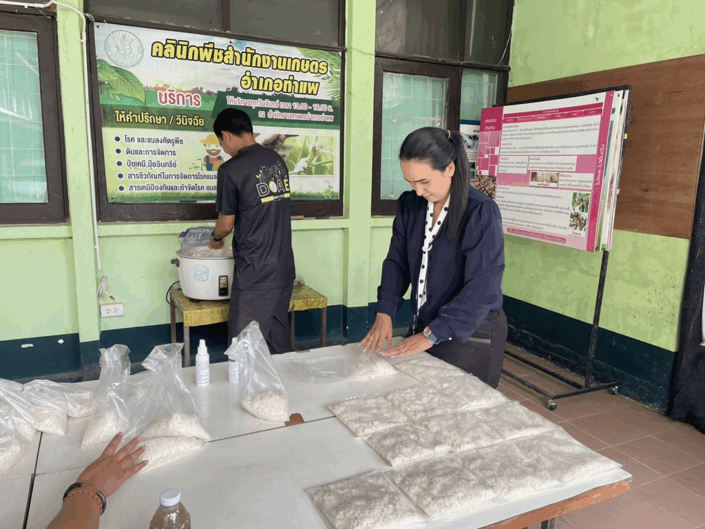 วันที่ 7 พฤศจิกายน 2568 นายอารีย์ โส๊ะสันสะ เกษตรอำเภอท่าแพ พร้อมด้วยเจ้าหน้าที่สำนักงานเกษตรอำเภอท่าแพ ร่วมกันผลิตสารชีวภัณฑ์เชื้อราไตรโครเดอร์มา เพื่อจัดเตรียมไว้สำหรับสนับสนุนและให้บริการแก่เกษตรกรในพื้นที่อำเภอท่าแพ จังหวัดสตูล