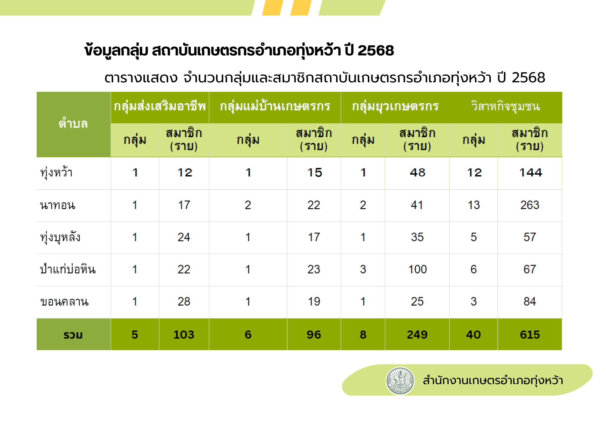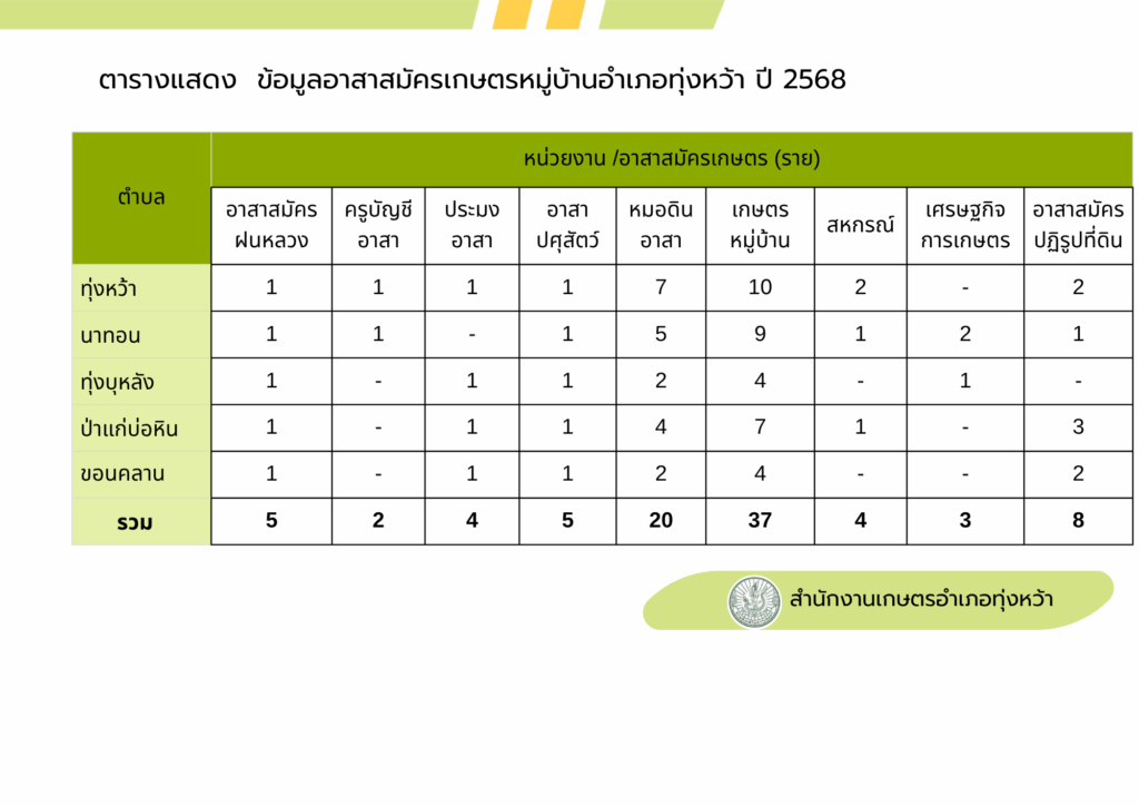 ข้อมูลอาสาสมัครเกษตรหมู่บ้านอำเภอทุ่งหว้า ปี2568