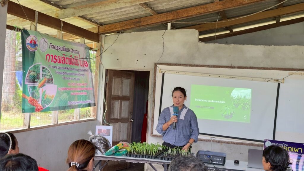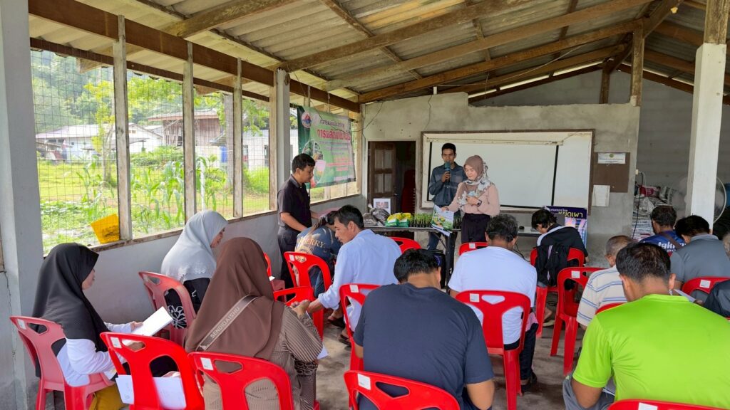 วันที่ 13 พฤศจิกายน 2568 นางสาวตุลาภรณ์ เส็นดาโอ๊ะ เกษตรอำเภอทุ่งหว้า มอบหมายให้เจ้าหน้าที่สำนักงานเกษตรอำเภอทุ่งหว้า ร่วมกับเจ้าหน้าที่กลุ่มอารักขาพืช สำนักงานเกษตรจังหวัดสตูล จัดอบรมอบรมเกษตรกรตามหลักสูตรการเพิ่มประสิทธิภาพการผลิตพืชใช้น้ำน้อย ตามโครงการยกระดับการผลิตสินค้าเกษตรต่อยอดสู่เกษตรเชิงพานิชย์ เพื่อถ่ายทอดความรู้และเทคโนโลยีที่เหมาะสมกับสภาพพื้นที่ในการปลูกพืชอยอายุสั้นอย่างรู้คุณค่าของทรัพยากรน้ำ ณ อาคารศูนย์บริการและถ่ายทอดเทคโนโลยีการเกษตรประจำตำบลนาทอน หมู่ที่ 2 ตำบลนาทอน อำเภอทุ่งหว้า จังหวัดสตูล